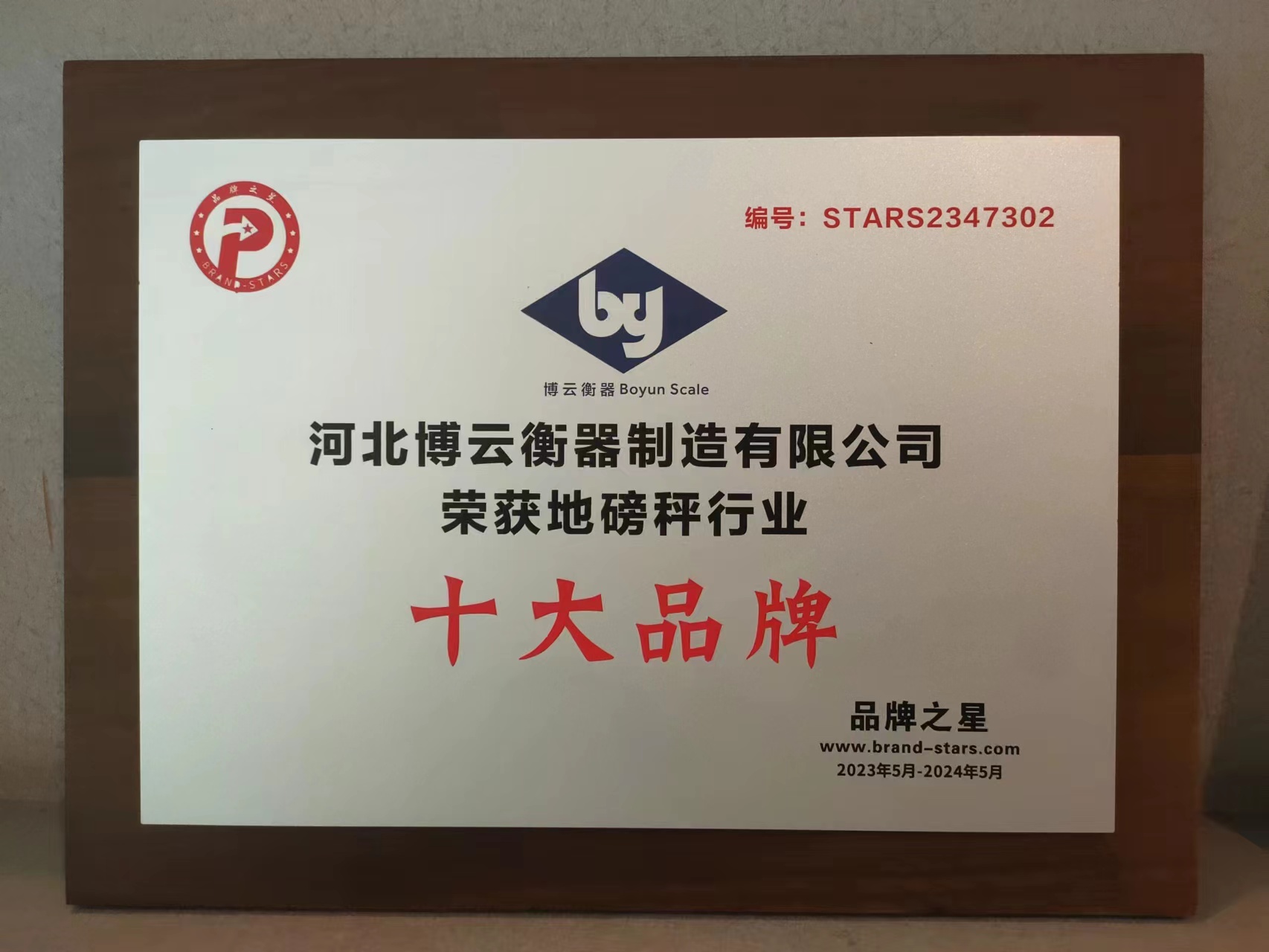 河北博云衡器制造有限公司榮獲地磅秤行業十大品牌